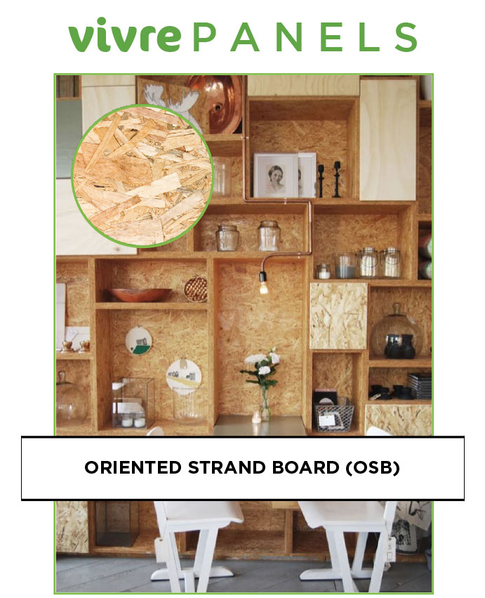 Therefore, Vivre OSB panels resist racking and shape distortion when subjected to demanding wind and seismic conditions. Relative to their strength, OSB panels are light in weight, easy to handle and install. Due to their unique aesthetic, they retain appeal for decorative application and can be directly painted or stained as they are completely waterproof.